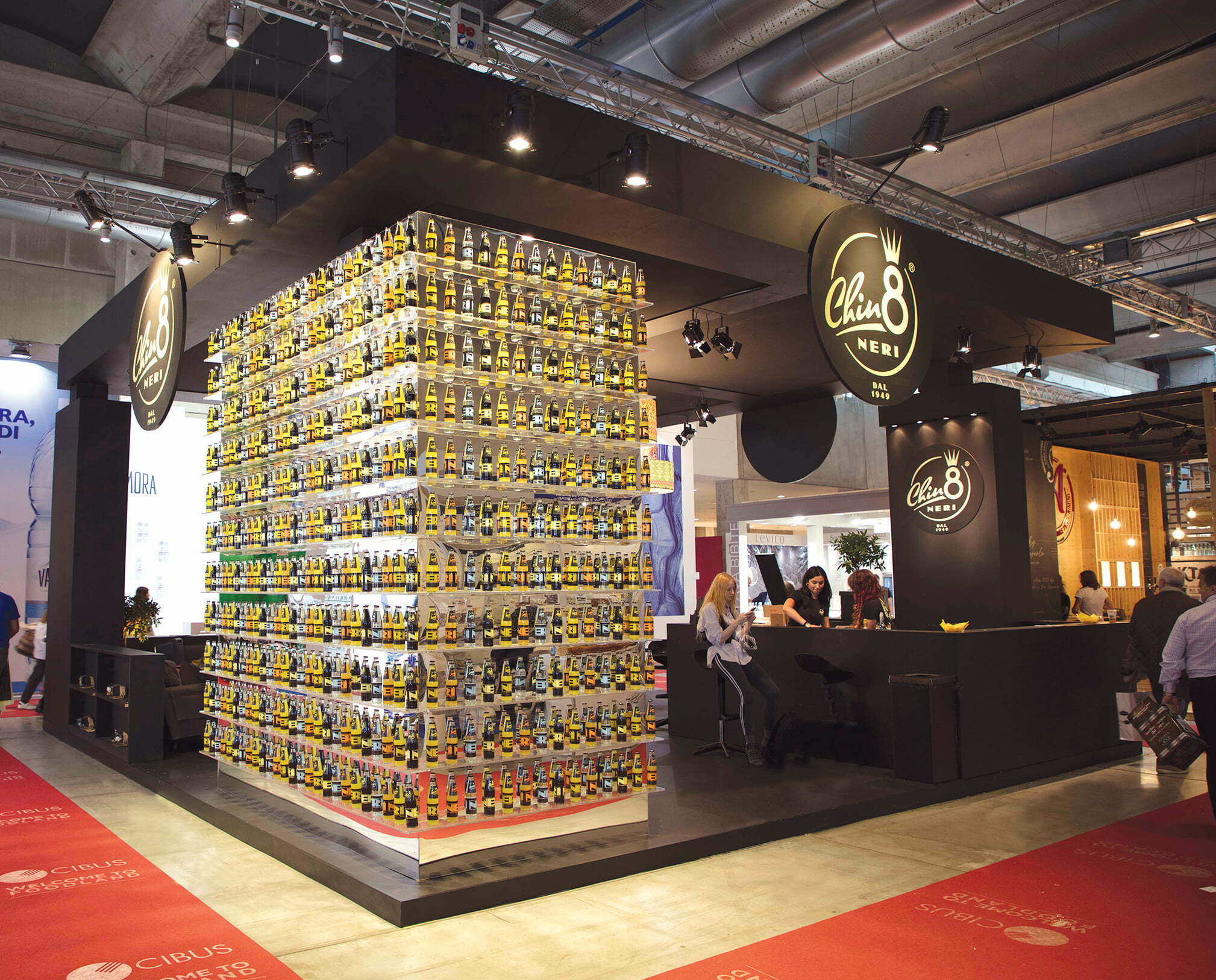 Massimizzare il potenziale della comunicazione pubblicitaria. La soluzione espositiva, ideata e realizzata per Chinotto Neri nell’ambito della fiera Cibus di Parma (2018), è in grado di far risaltare sia il brand commerciale che il messaggio promozionale.